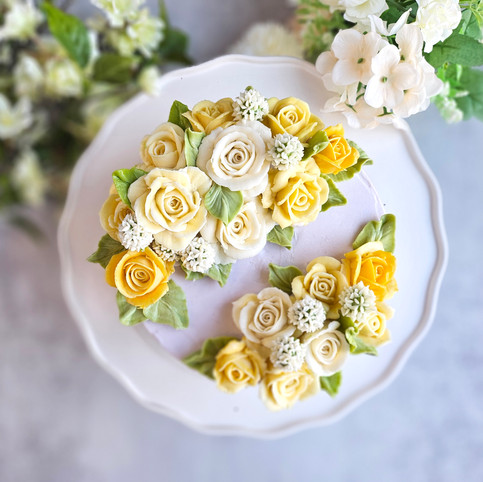 These are cakes made with roses that I've practiced piping for a long time, trying to change the uniform beginner roses piping to make them look more like real flowers. I'm still practicing to make better roses.